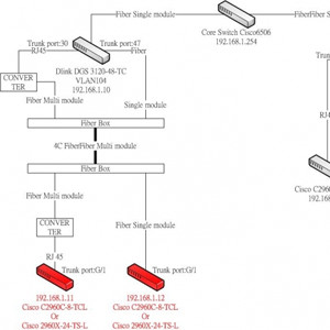 如圖的左下角那兩台紅色交換器,剛接上去的時候都很正常,也可以進入管理介面,