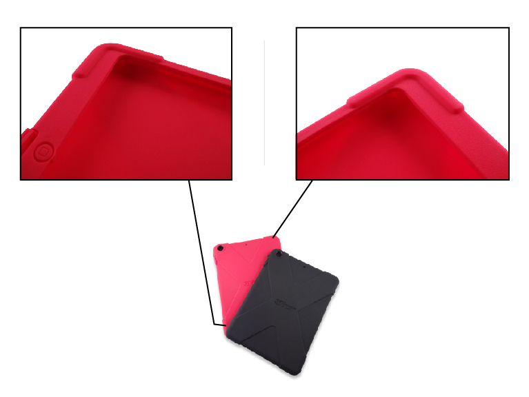 平板电脑不小心摔落最害怕边角因此碎裂,aXtion Bold特地强化平板电脑的四角,利用外壳背面的『X』延伸帮四个边角加厚,提供更强的防护机制。