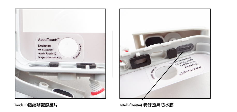 aXtion Pro iPhone也为因应5S使用Touch ID指纹辨识感应片。底部有Intelli-filter(tm) 特殊透气防水膜,不仅不受保护壳影响,能让声音不减弱的传递出去,更可以有效阻隔水分子进入。