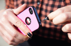 吊饰孔曾是每支手机必备的小物件之一,但自从智慧型手机上市以来,便几乎不再看到『吊饰孔』的存在。后来有厂商将吊饰孔延伸至『耳机孔』,多一个塑胶耳机塞就能挂吊饰或者搭配颈带使用,但塑胶製品总会有不堪使用或耐重的疑虑。『Pluggy Lock』以金属製成,比塑胶製品有更高的耐重强度,并搭配专利设计防滑橡胶,就能避免上述的事情发生。将Pluggy Lock插入耳机孔后,仅需旋转一至两圈,便完成安装。Pluggy Lock的中心有螺纹设计,使用过程中,如旋转Pluggy Lock时底部的螺栓便会往上升,向上推挤止滑橡胶,橡胶受到外力挤压变形往外膨胀,膨胀后与耳机孔接触部分便能发挥止滑效果。Pluggy Lock能耐重达3.2kg的重量,远大于市面上塑胶製耳机塞,能确保手机不会摔落。