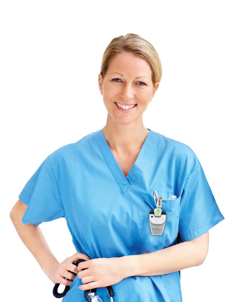 BIOVIGIL是一款传感器,它能检测出医护人员的手是否乾淨。医护人员必须佩戴一个好似识别证的传感器,依据手部的整洁状况会有红色、黄色、绿色的提示灯。当医护人员清洁完手部后靠近BIOVIGIL,会依据手部的酒精含量来判别是否通过检测,绿色代表最佳情况。假设医护人员手部不够乾淨,BIOVIGIL会提示需要洗手并闪烁黄灯,但医护人员如果忽视BIOVIGIL的提醒则会亮起红色警示灯。
