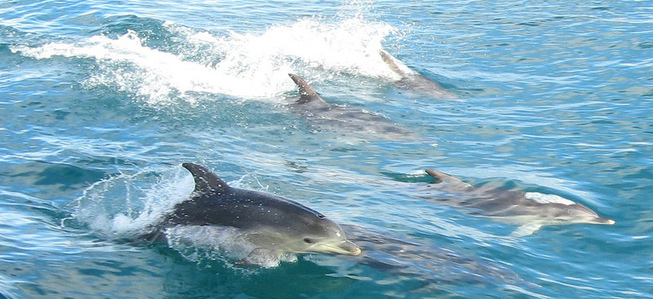 海豚是智商最高的动物之一,有着友善、爱嬉闹的个性,是相当受欢迎的动物之一。海豚之间使用哨声交流,哨声能辨识个体和情绪状况的讯息,是海豚主要的通讯管道,除进行讯息交换也是让其他个体瞭解自身的现况与行为趋向。海豚以喷水孔正下方的气囊发出哨音、脉波、嘀嗒声等声音,海豚一般用口哨声和脉冲式的声音来进行沟通,连续的一系列嘀嗒声通常都有指向性,用来作回声定位,嘀嗒声会随着与目标物体距离缩短而变得更密集,这是所有水生哺乳动物中能发出的响度最大的一种声音。