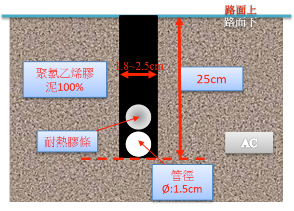 台北光纤为减少前期建设对于市民的生活影响,参考加拿大、美国、纽西兰、马来西亚、欧洲等各国城市电信营运者採用『微管沟工法』进行铺设,此建设方式不需要挖路埋管线,只需要专用的切割机切割出一个细凹槽(深25公分、宽约2公分的沟槽)并将套好导管的光纤线缆植入其中儘可,与传统方式相比之下将施工范围大幅减少许多、工期也相对减少提升通讯服务可用性。