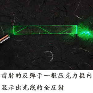 图为:雷射的反弹于一根压克力棍内部,显示出光线的全反射