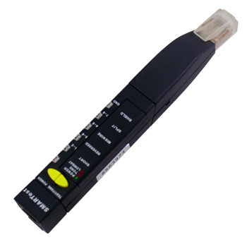 网路传输有问题!电脑没问题、连接电脑的网路线也没问题,还有哪裡有问题?或许该查查网路座(Jack)噢!『SMARTest』能判别线缆引角对应(短路、断路、错绞、分叉)状况,主副机的特殊设计能针对网路座(Jack)到配线盘(Patch Panel)的线缆做检测,让你在线缆安装完成的情况下也能进行远端测试。『SMARTest』整体重量仅仅只有55克、尺寸也不到18公分,体积轻巧让网管人员或施工人员便于携带,阶段性的灯号显示提供你完整的测试诊断结果。