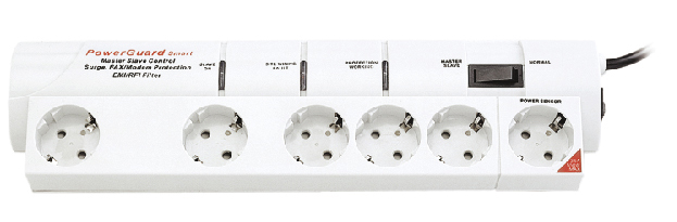 PowerGuard最具特色的一项功能为主从控制,举例来说:使用者将电脑主机电源接上Master插座上,将萤幕、印表机等週边设备接上Slave插座。当电脑主机关机时,PowerGuard的Master侦测到电源关闭时便会连动将Slave插座上的设备一同关闭、切断电源。不仅防止使用者忘记关闭电源,也能减少设备待机时所耗费的电能。