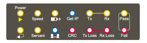 GIGATEST面板上有許多LED燈號,經由LED燈號指示及記錄檔顯示測試結果通過或失敗: