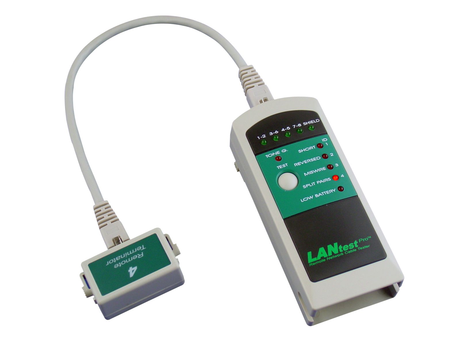 LANtest Pro另有四個副機組,能提供施工人員面對眾多線纜時查找出對應線纜。LANtest Pro面板上直排燈號右側有個『ID』資訊標示,四個副機分別對應於ID1~ID4的副機編號,施工人員能同時接上四條線纜於副機,從中擇一條線纜接上主機後,ID燈號會顯示三次閃爍來辨識出受測線纜所接上的副機組編號,這個簡易的辨識功能不僅方便也大大的提升檢測效率。