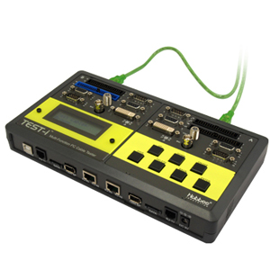 它不僅能測試線材並判別斷路、短路、交叉、反線或錯絞等錯誤,並可以引腳對引腳(Pin-to-pin)方式顯示並且可儲存100筆測試結果。所測試的資料可透過USB連接器上傳至電腦進行分析。透過面板上的LCD螢幕 (具有背光功能),用戶可以很輕易有效判別線材錯誤情況。TEST–i為一款結合快速偵測及顯示線材引腳對引腳(Pin-to-pin)對應情形的完美工具。